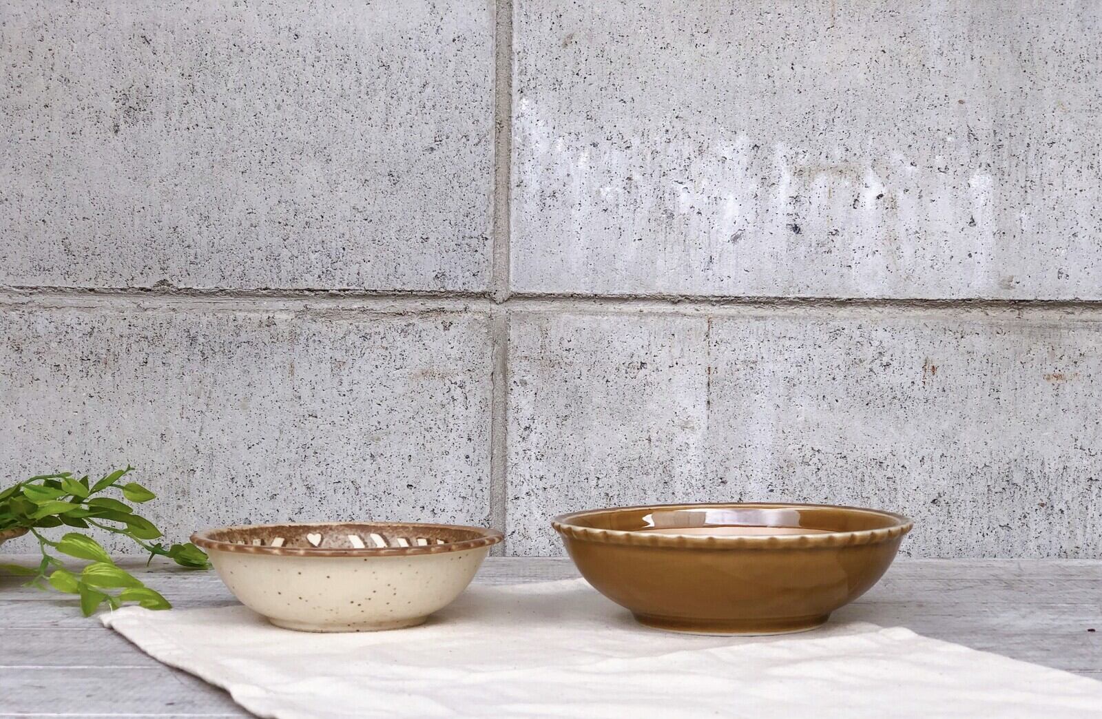 可愛いリムが、本物のビスケットみたいなボウルです。ほっとひと息付く休憩タイムや、パーティーやおもてなしの器としても、毎日の食卓にも、様々なシーンで活躍する食器です。