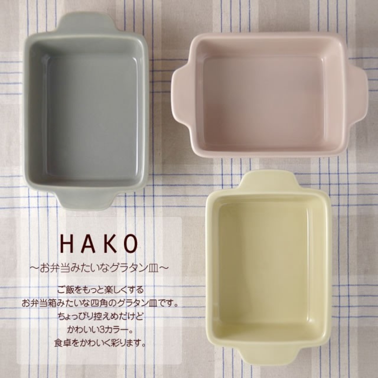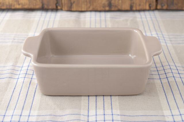 四角いお弁当箱みたいなうつわです。ご飯の時間がもっと楽しくなるような、ちょっぴり変わったかたちとやさしいカラーがポイント。グラタンだけじゃなく、サラダやシチューにも活用して、いつもと違った雰囲気を楽しんでみてはいかがでしょう。