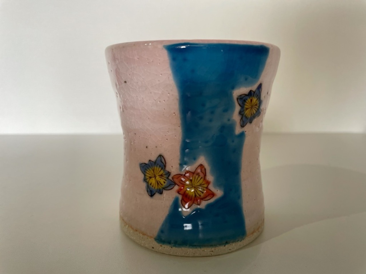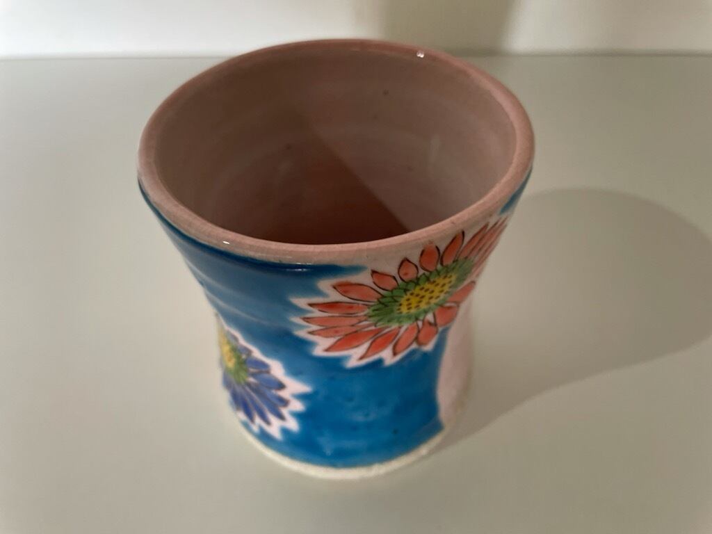 これからの季節にぴったりの、爽やかな色彩で描かれたひまわりの湯呑みです。
