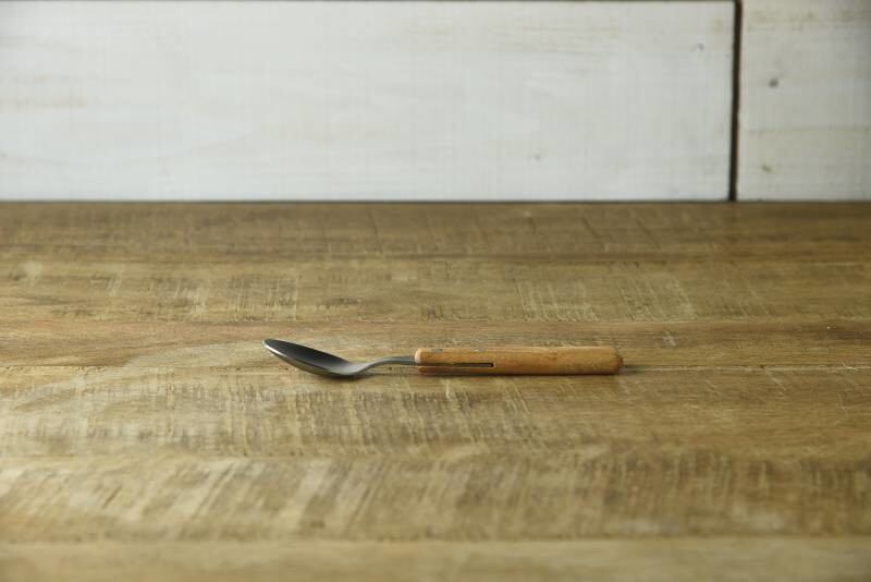 天然木のサラサラとしたナチュラルな手触りと、ステンレス製のすくいやすく切りやすい先端が、キャンプやBBQなどのアウトドアにもピッタリなカトラリー。がっつりお肉やパスタもおてのものです!