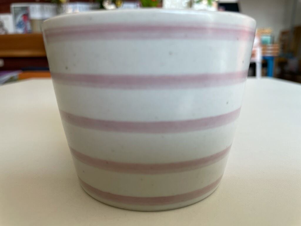 蕎麦猪口 手描きボーダー・ピンク(波佐見焼)