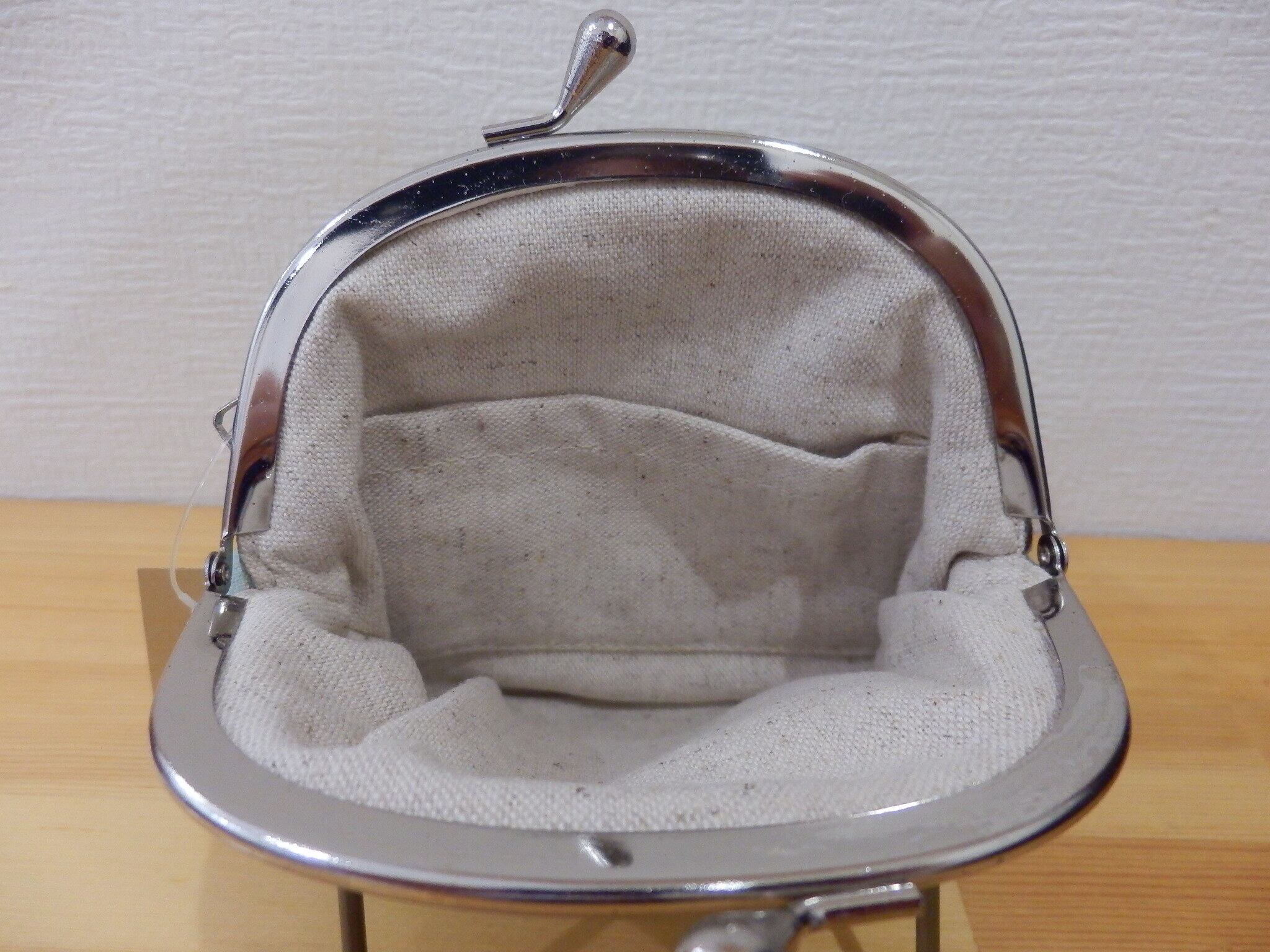 口金はシルバー色、しずく型のひねり玉です。片カンつきです。