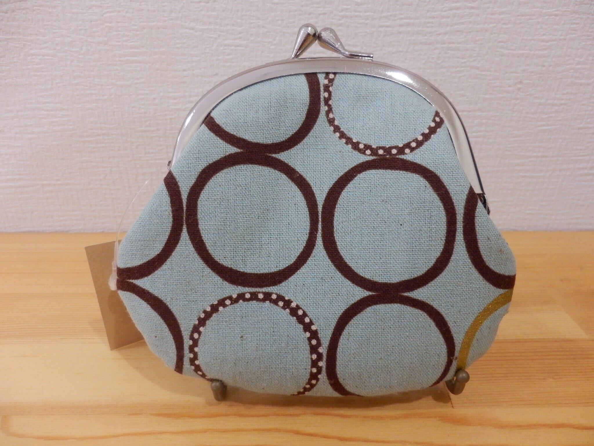 10cmしずく玉口金 丸型ポーチ マチなし 北欧調サークル柄