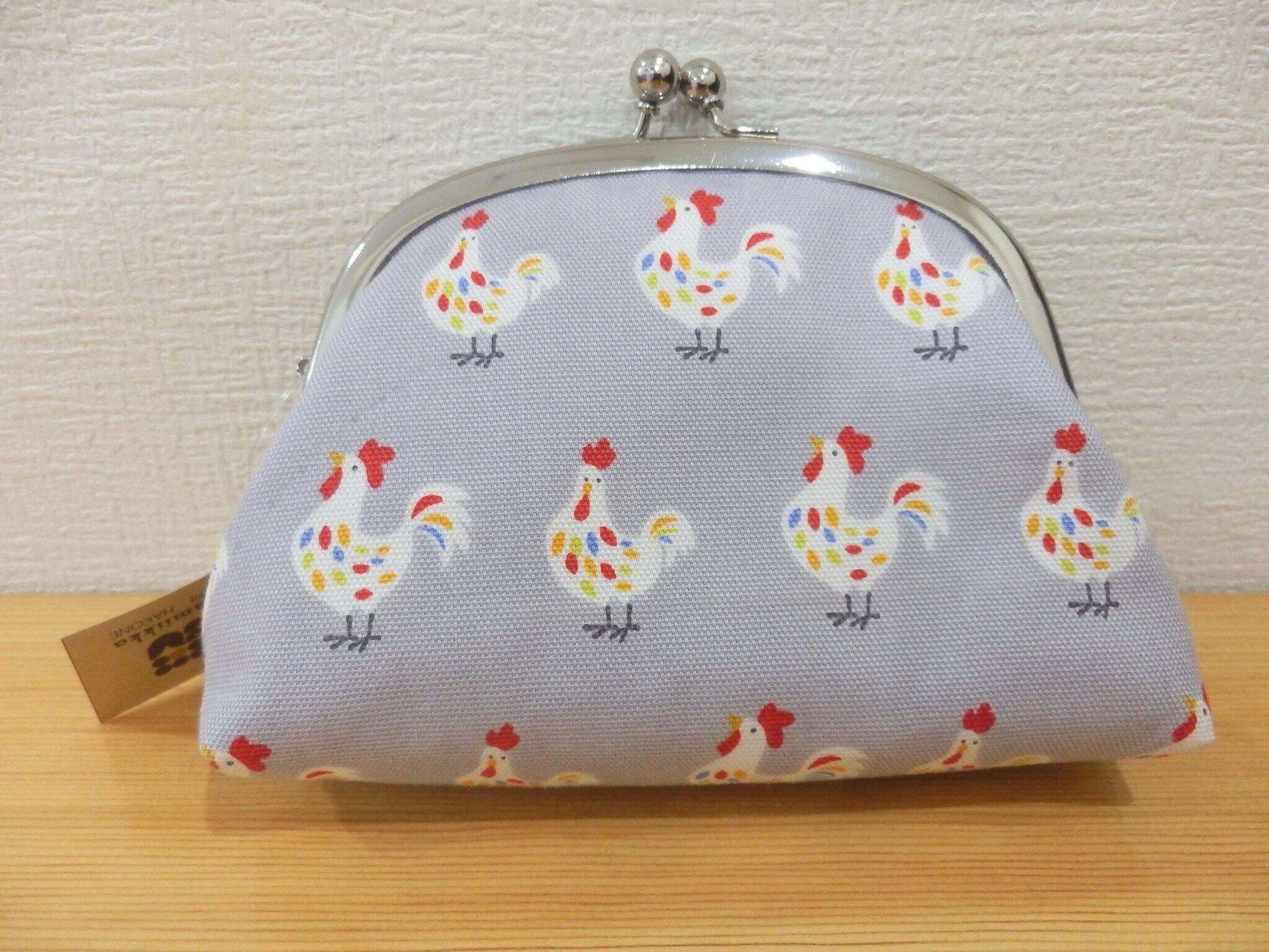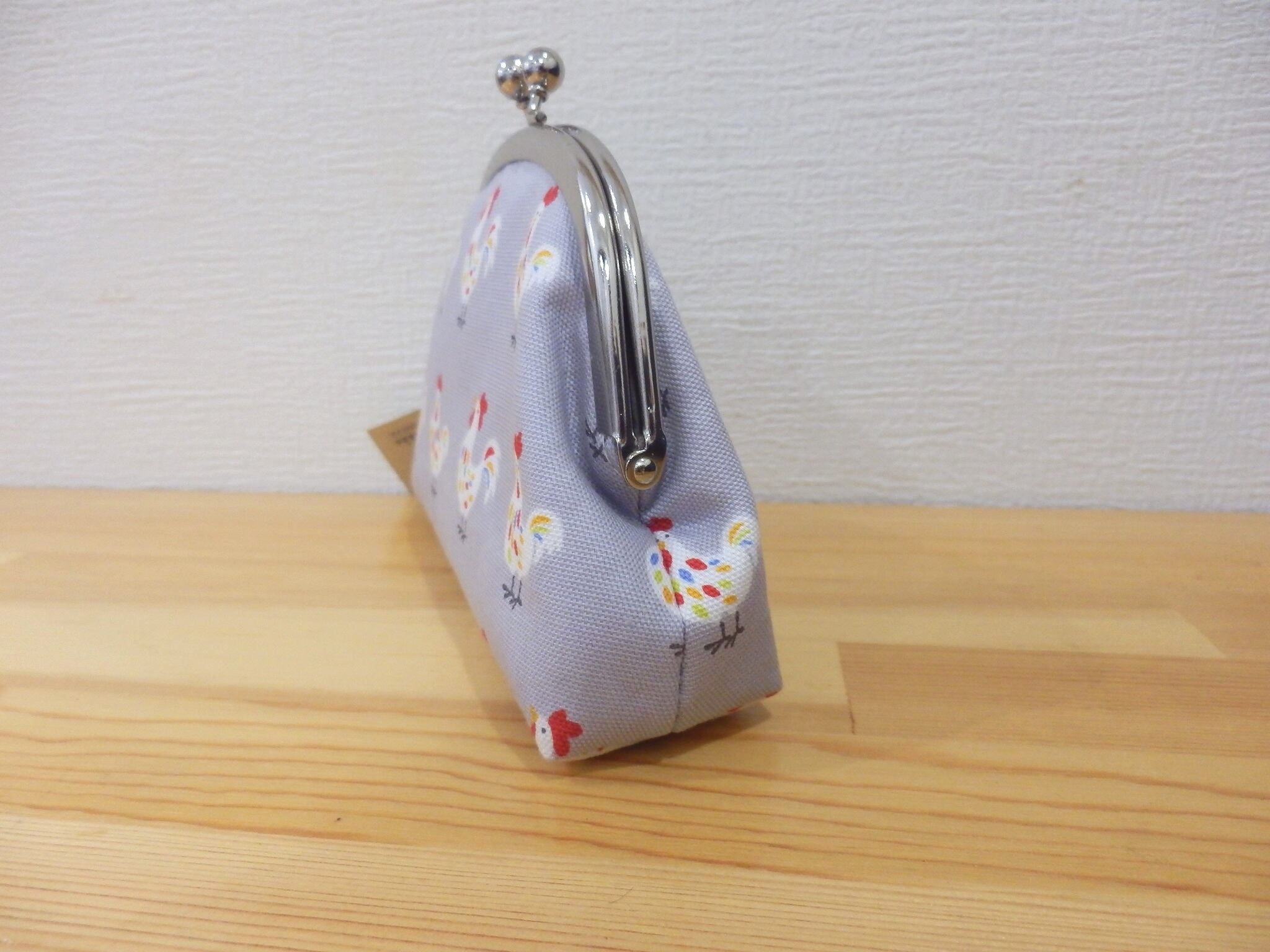 10cm口金 かまぼこ型ポーチ マチあり ニワトリさん